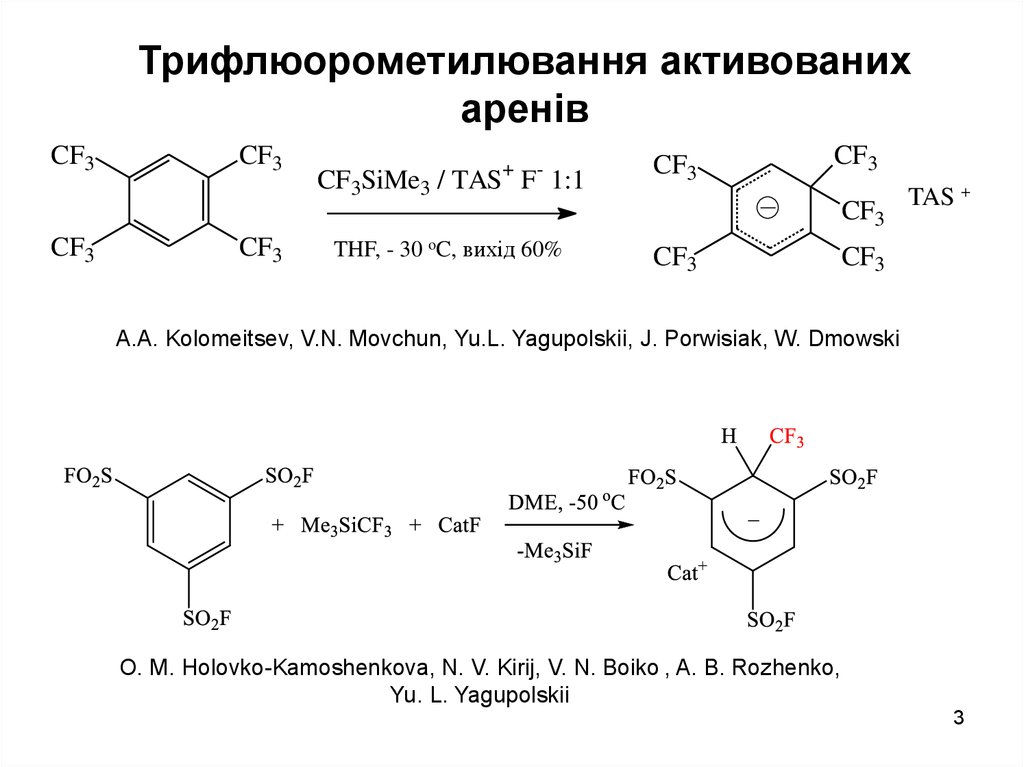 1. Аренкарбонільні комплекси металів у реакціях перфлюороалкілювання та деароматизації