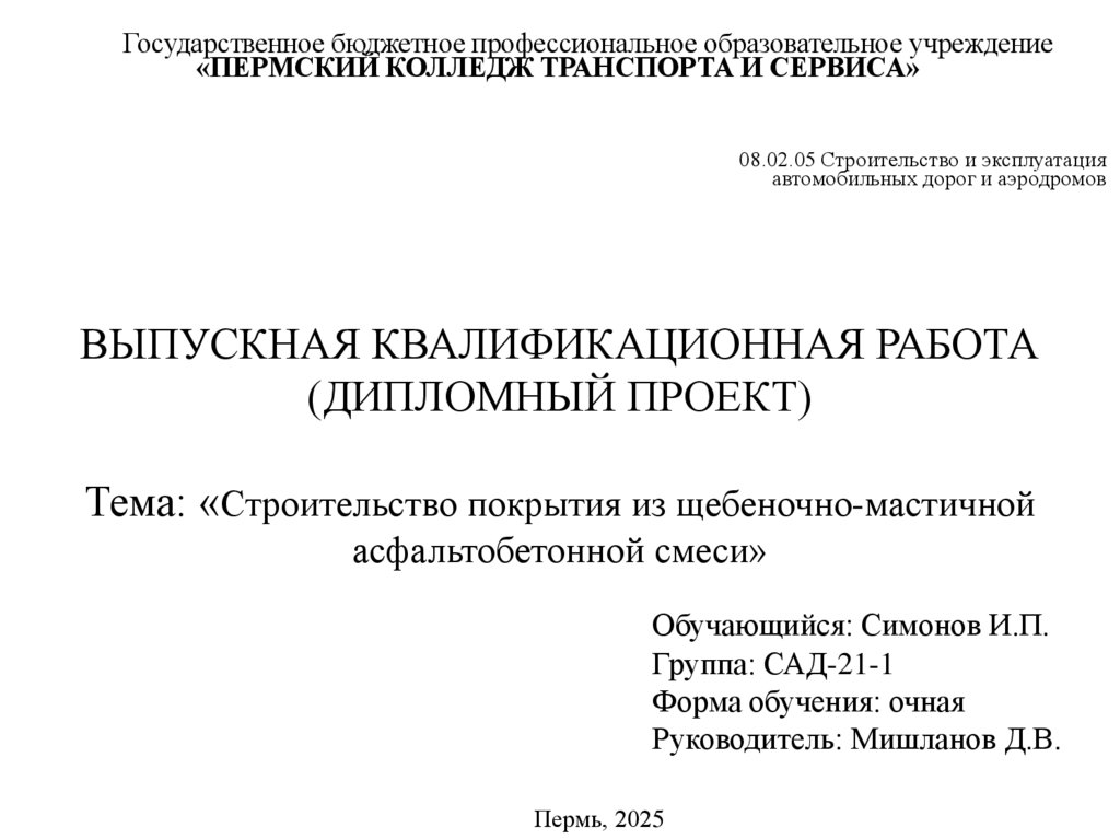 Тема: «Строительство покрытия из щебеночно-мастичной