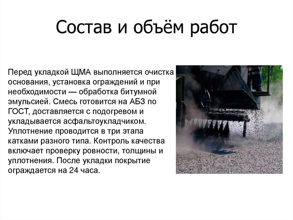 Состав и объём работПеред укладкой ЩМА выполняется очистка