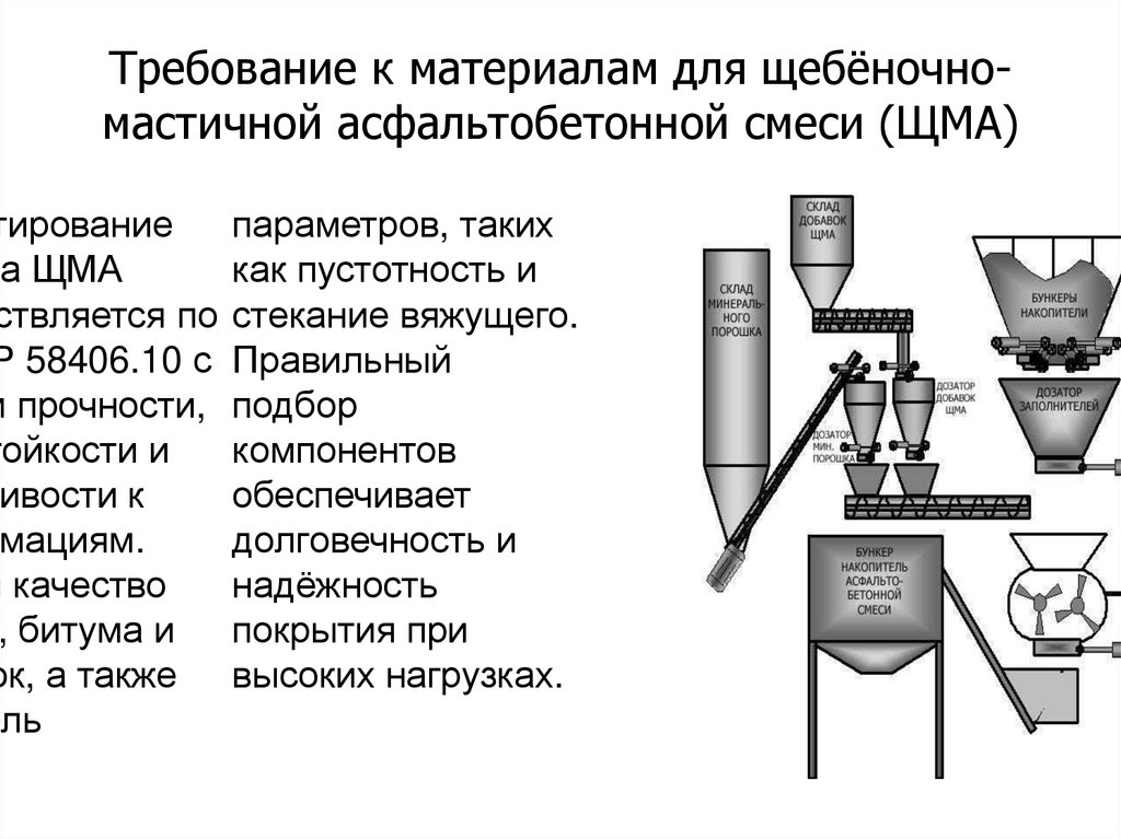 Требование к материалам для щебёночномастичной асфальтобетонной смеси (ЩМА)тирование