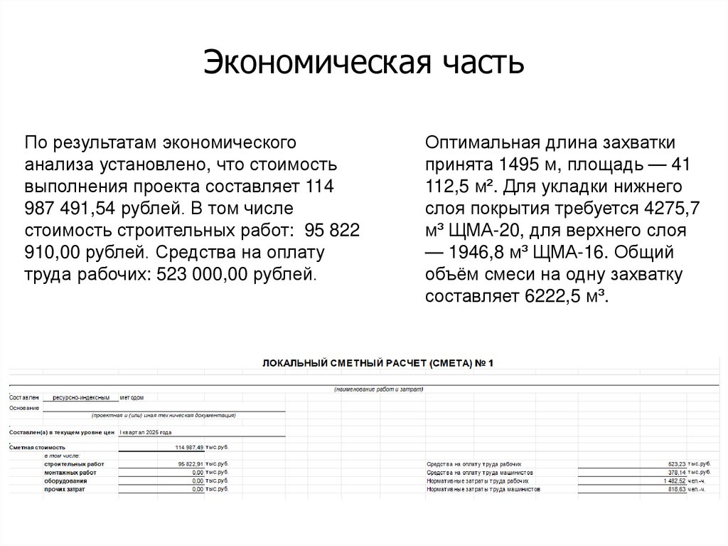 Экономическая частьПо результатам экономического
