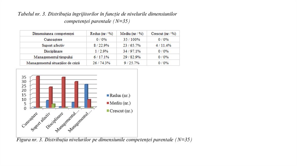 Tabelul nr. 3. Distribuția îngrijitorilor în funcție de nivelurile dimensiunilorcompetenței parentale (N=35)