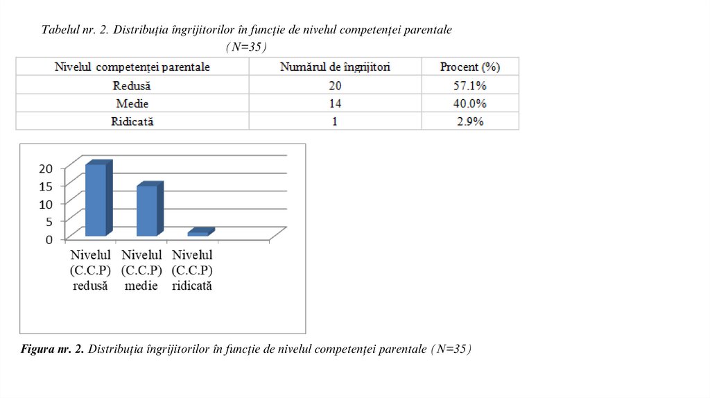Tabelul nr. 2. Distribuția îngrijitorilor în funcție de nivelul competenței parentale(N=35)