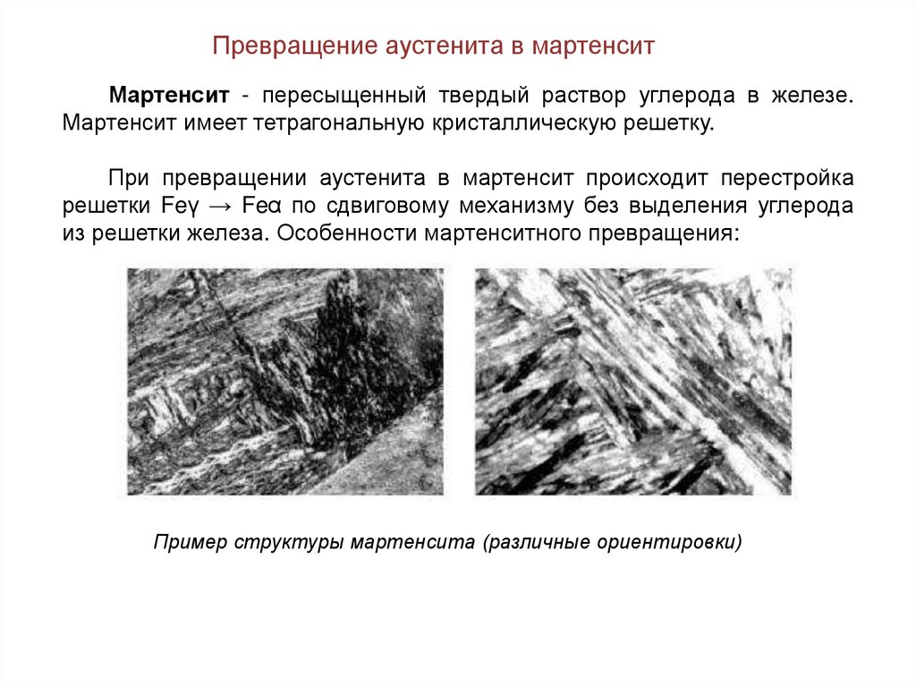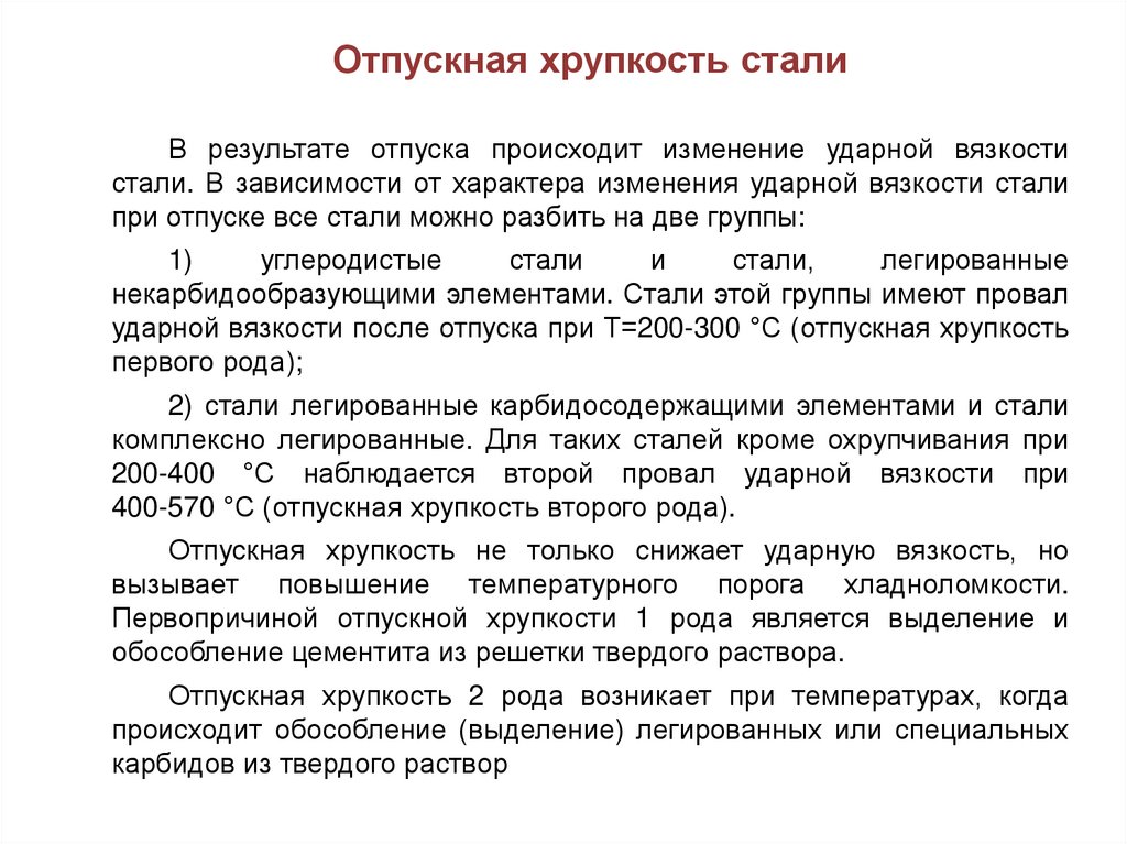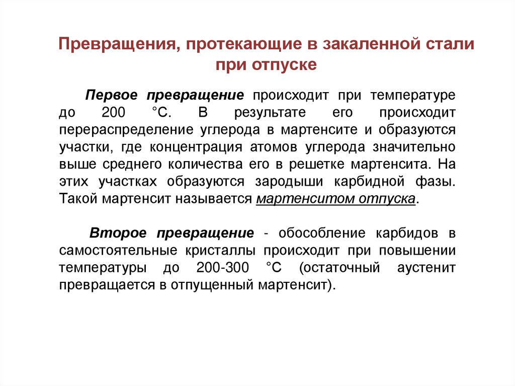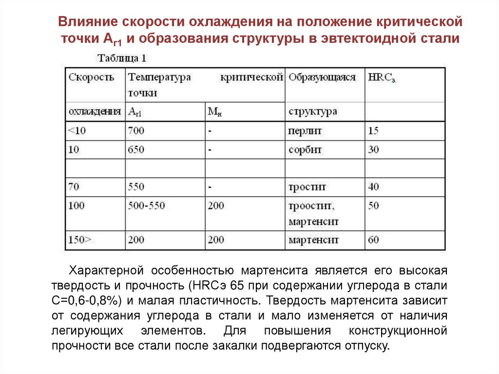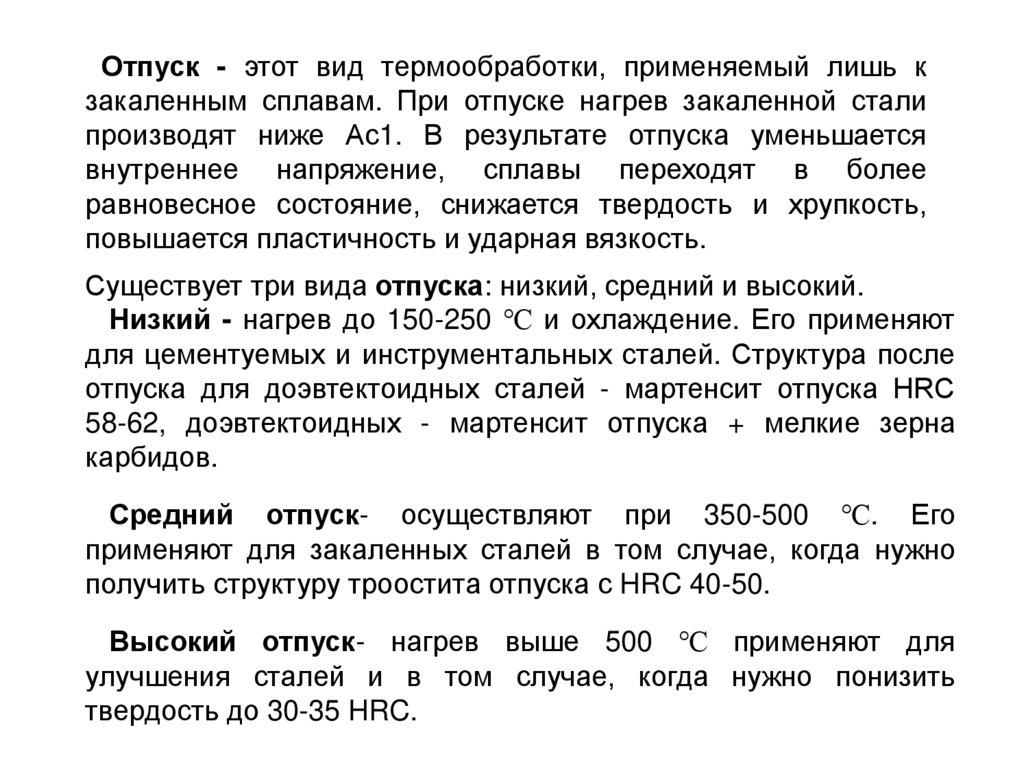 отпуска для доэвтектоидных сталей - мартенсит отпуска НRC