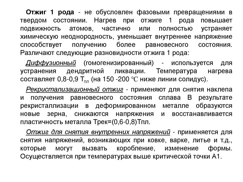 Отжиг 1 рода - не обусловлен фазовыми превращениями втвердом состоянии. Нагрев при отжиге 1 рода повышает