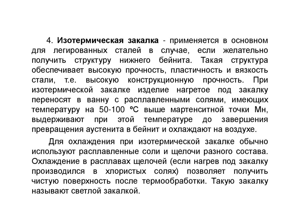 4. Изотермическая закалка - применяется в основномдля легированных сталей в случае, если желательно