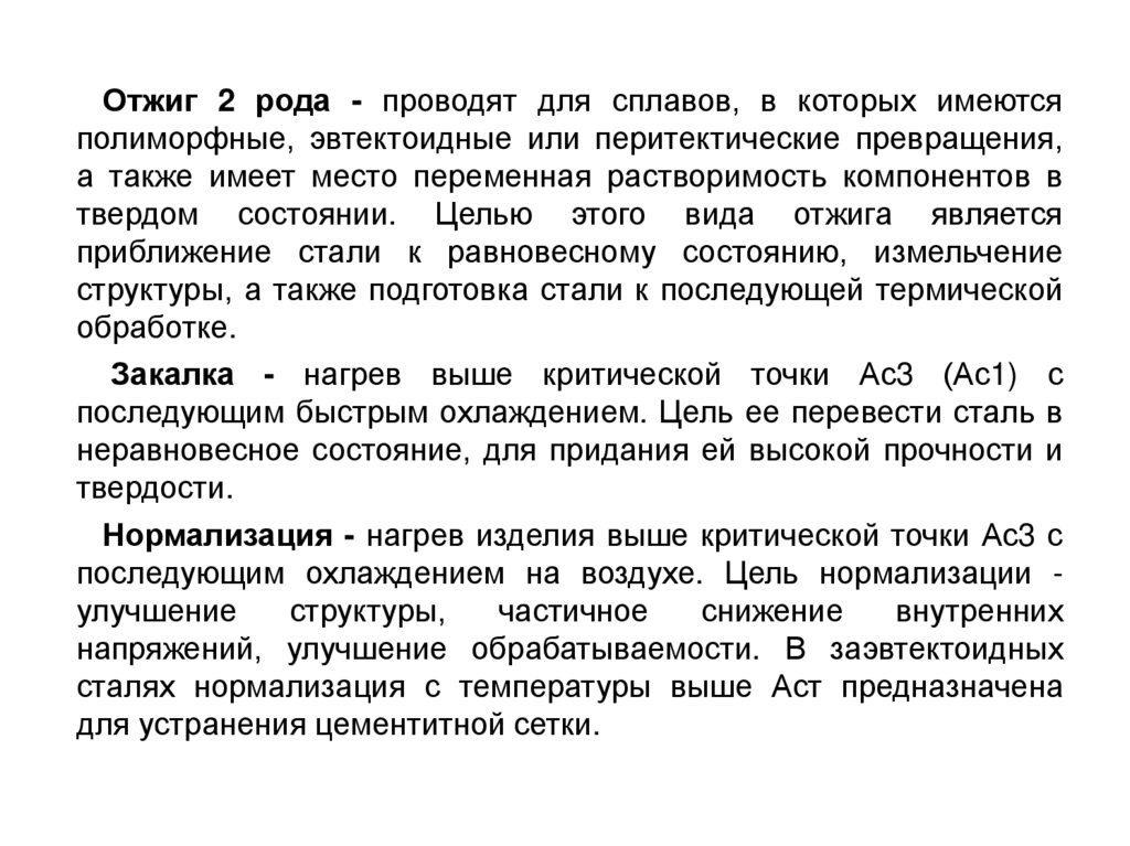 Отжиг 2 рода - проводят для сплавов, в которых имеютсяполиморфные, эвтектоидные или перитектические превращения,