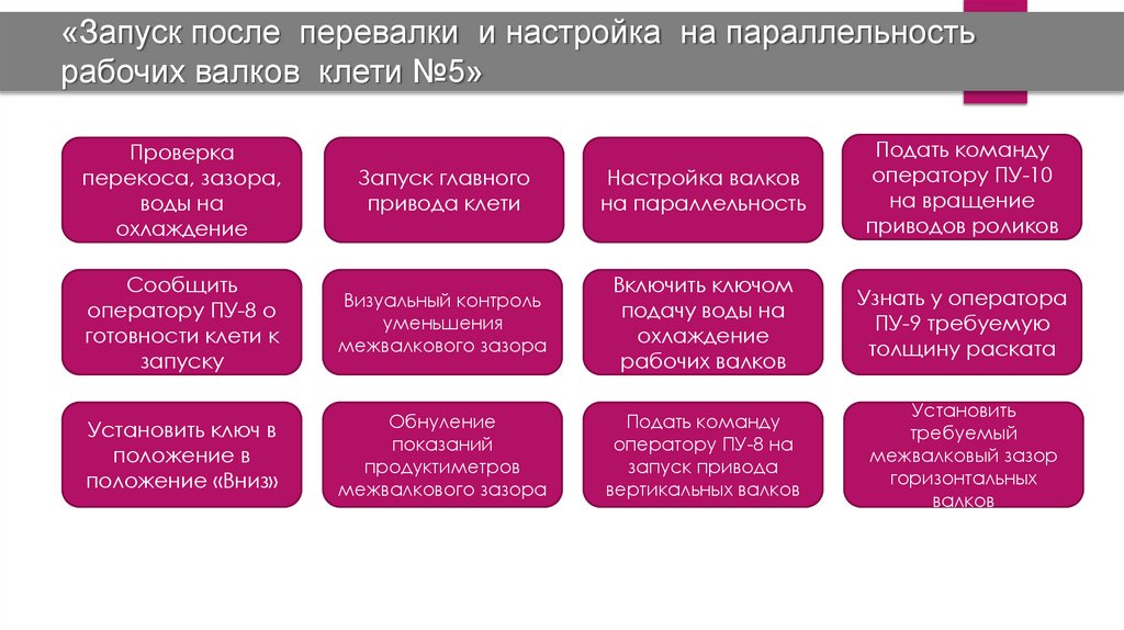 «Запуск после перевалки и настройка на параллельностьрабочих валков клети №5»