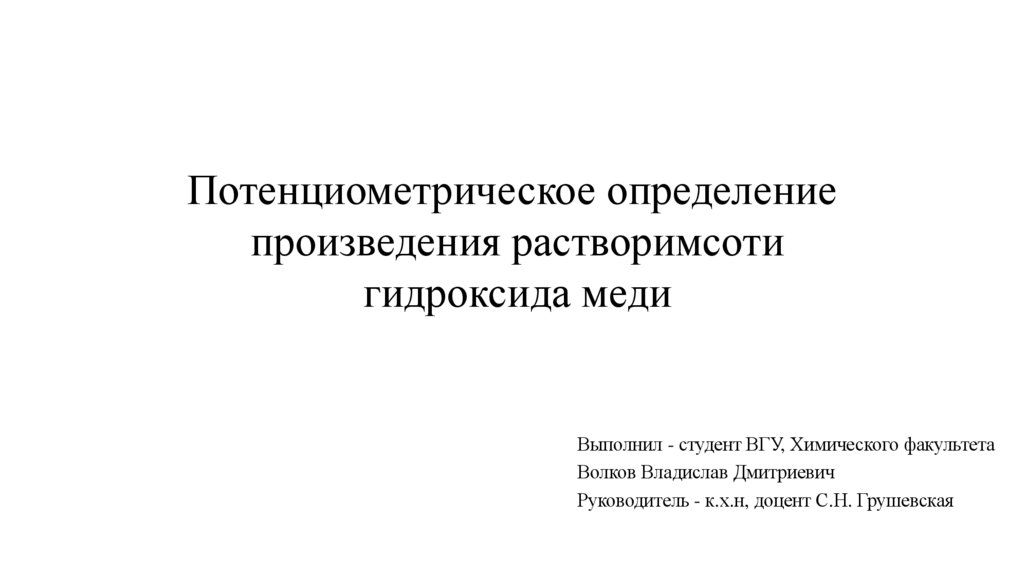 произведение растворимости гидроксида меди потенциаметрическим титрованием.