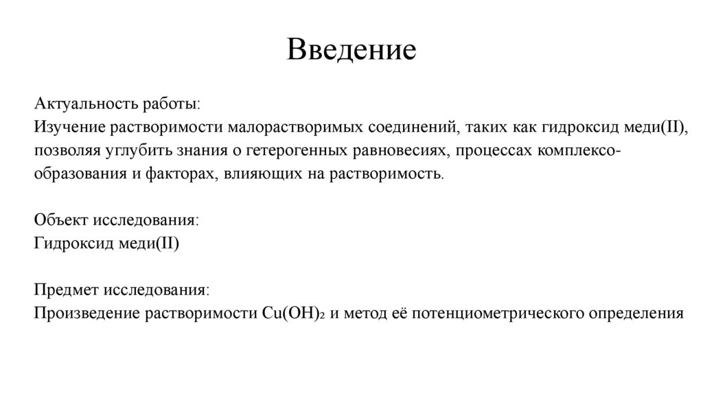 Изучение растворимости малорастворимых соединений, таких как гидроксид меди(II),