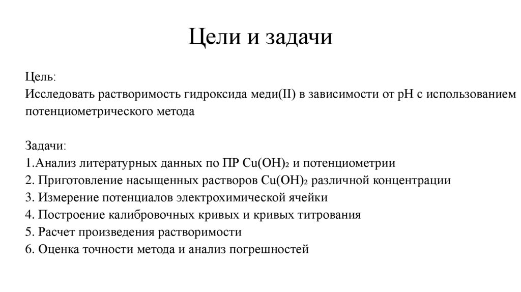 1.Анализ литературных данных по ПР Cu(OH)₂ и потенциометрии