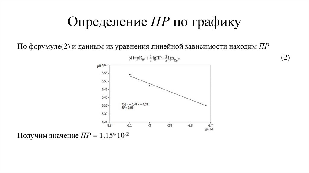 Определение ПР по графикуПо форумуле(2) и данным из уравнения линейной зависимости находим ПР