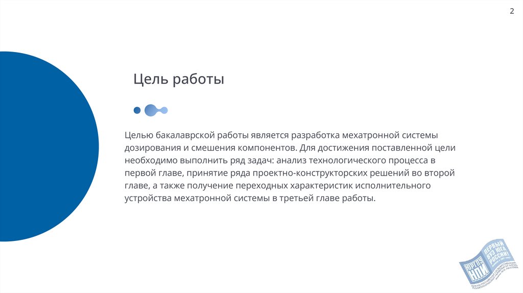 Целью бакалаврской работы является разработка мехатронной системы