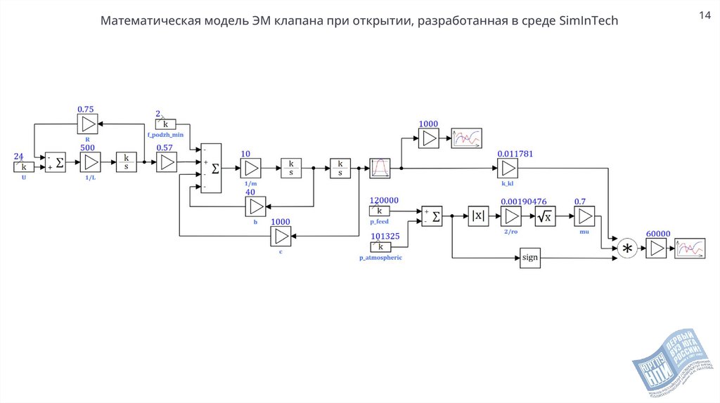 Математическая модель ЭМ клапана при открытии, разработанная в среде SimInTech14