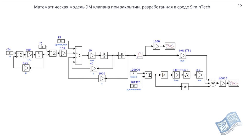 Математическая модель ЭМ клапана при закрытии, разработанная в среде SimInTech15
