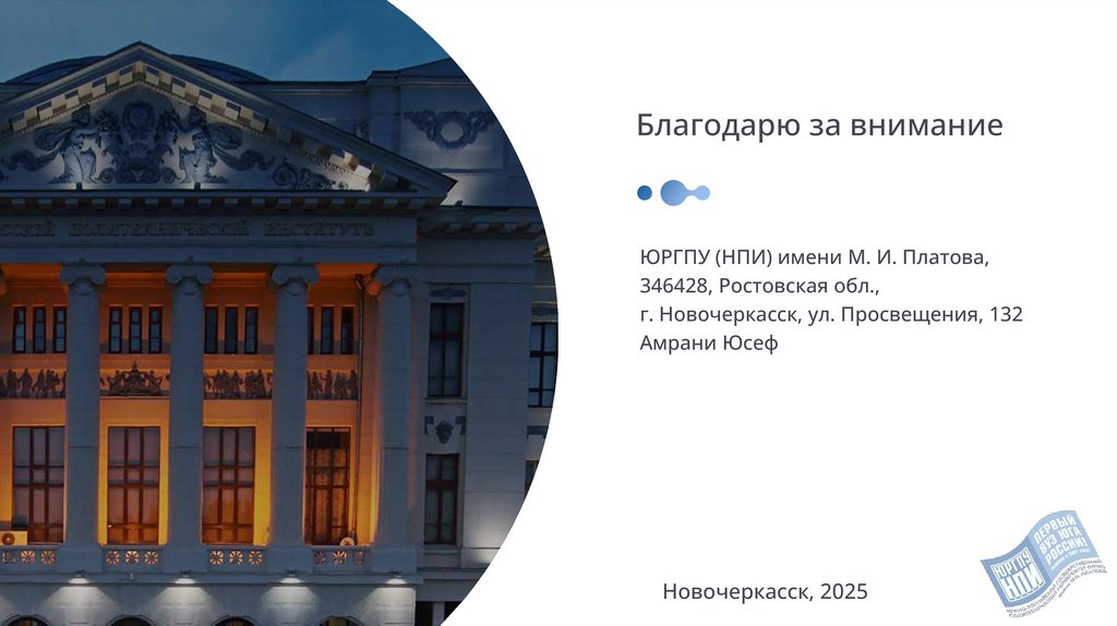 Благодарю за вниманиеЮРГПУ (НПИ) имени М. И. Платова,