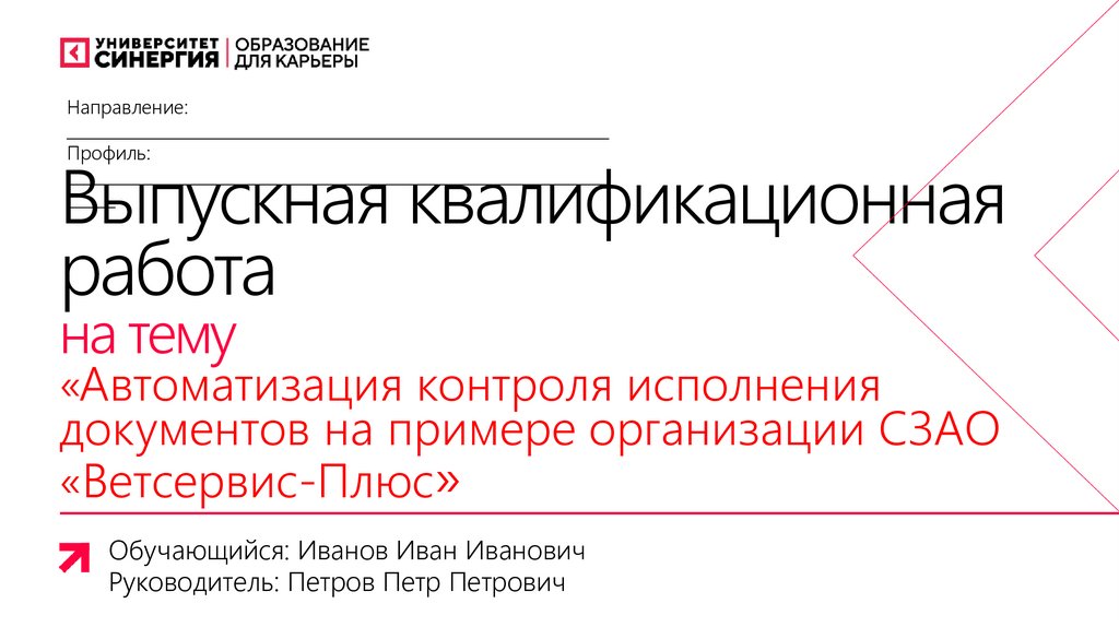 Автоматизация контроля исполнения документов на примере организации СЗАО «Ветсервис-Плюс»