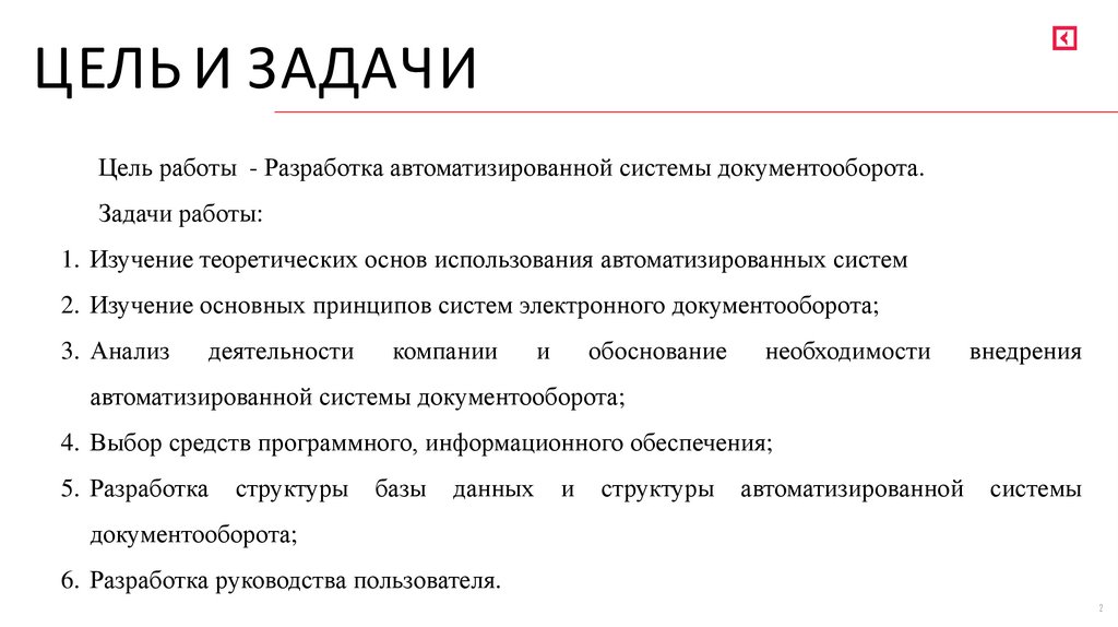 ЦЕЛЬ И ЗАДАЧИЦель работы - Разработка автоматизированной системы документооборота.