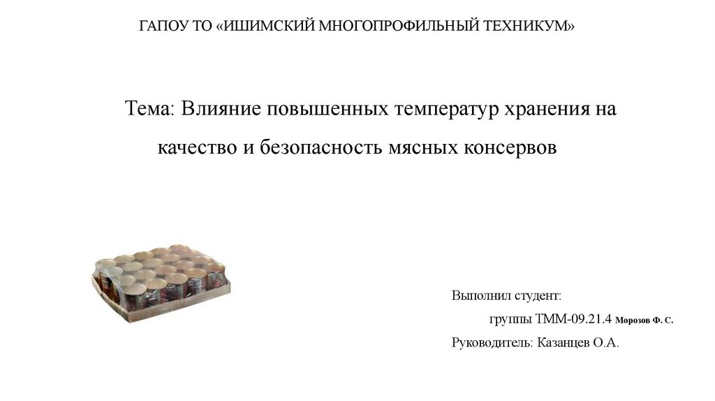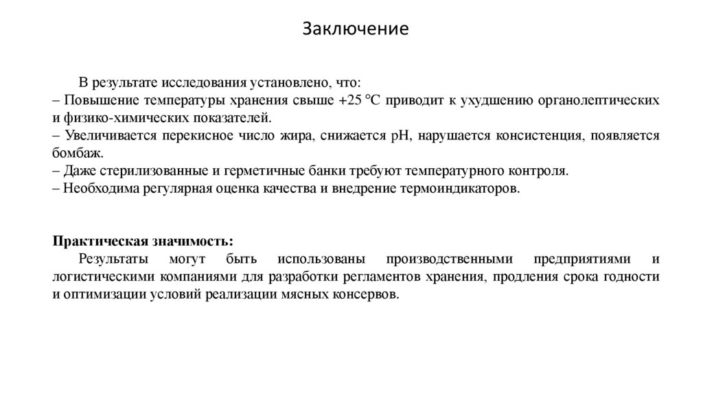 1. Тема: Влияние повышенных температур хранения на качество и безопасность мясных консервов