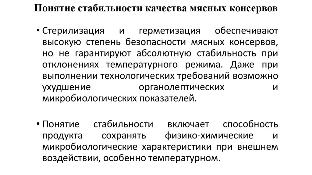 3. Понятие стабильности качества мясных консервов