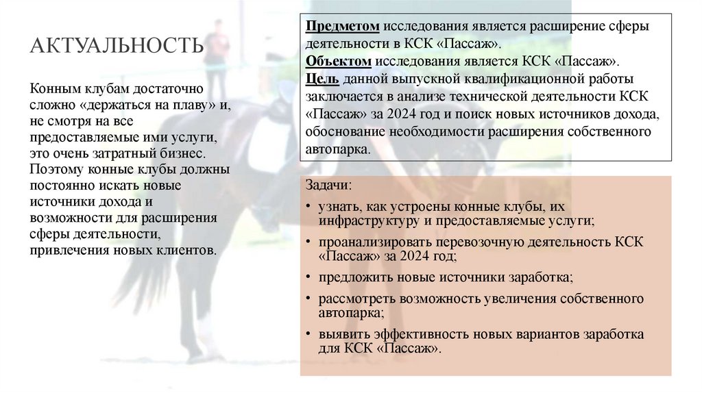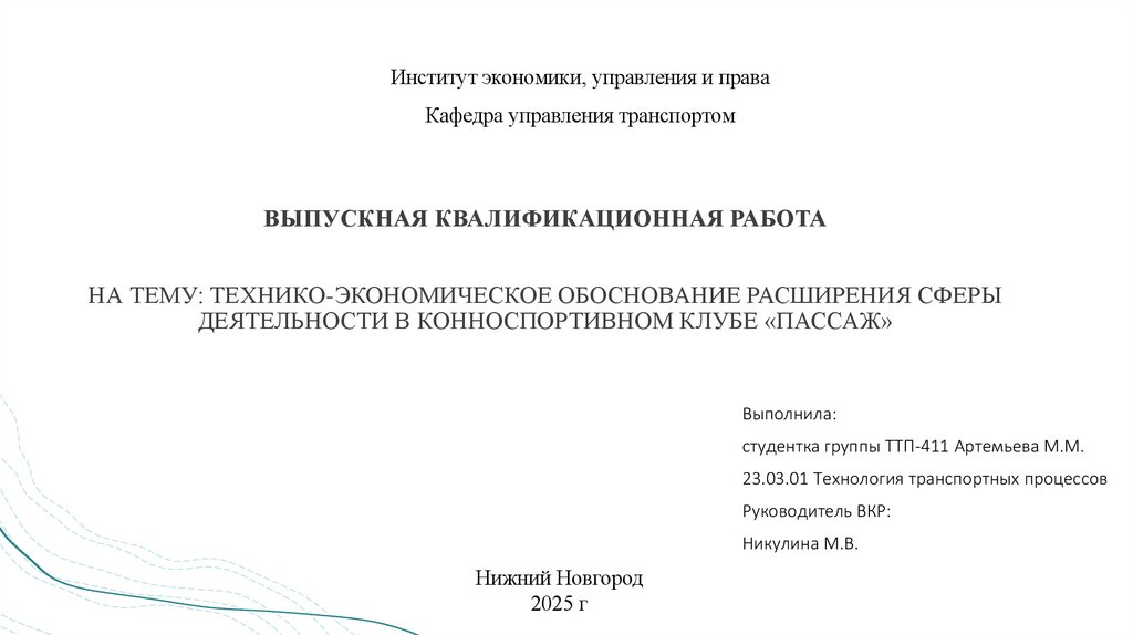 1. ВЫПУСКНАЯ КВАЛИФИКАЦИОННАЯ РАБОТА на тему: Технико-экономическое обоснование расширения сферы деятельности в конноспортивном