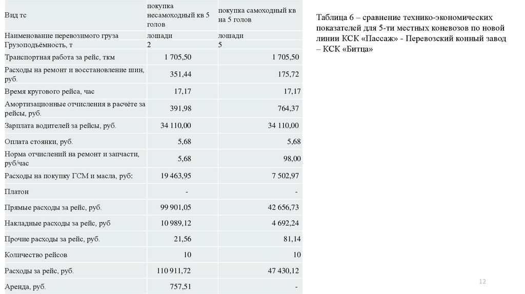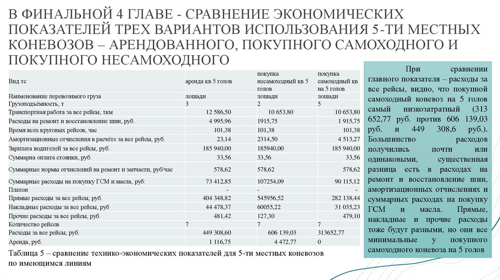 Таблица 5 – сравнение технико-экономических показателей для 5-ти местных коневозов
