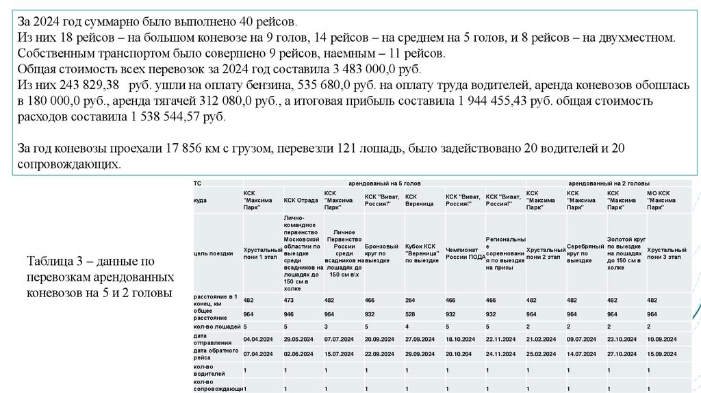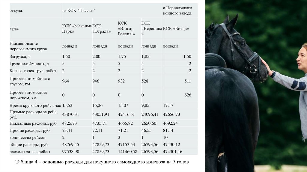 4. - водителей выбирают тщательно, В 2024 году их услуги стоили 30 руб./км. - Погрузкой и выгрузкой лошадей занимаются