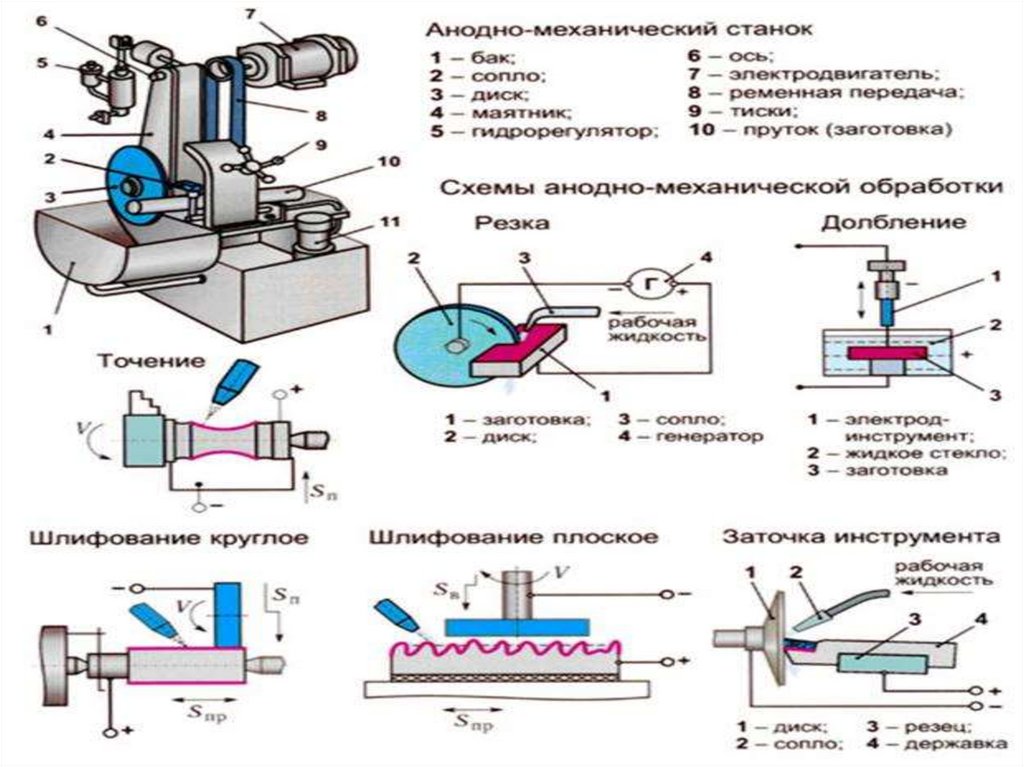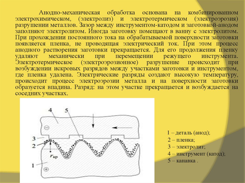 Анодно-механическая обработка основана на комбинированномэлектрохимическом, (электролиз) и электротермическом (электроэрозия)