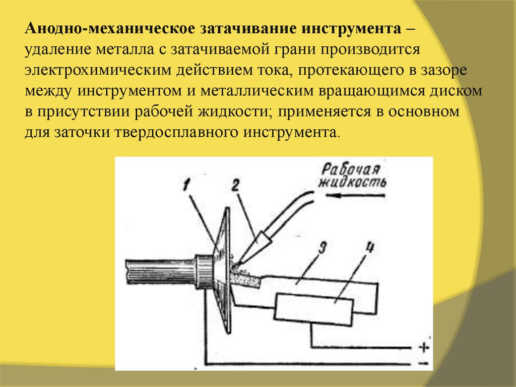 Анодно-механическое затачивание инструмента –удаление металла с затачиваемой грани производится