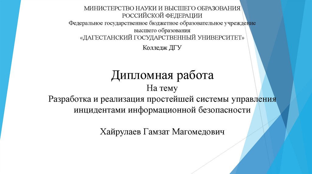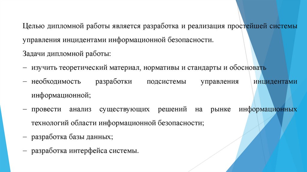 Целью дипломной работы является разработка и реализация простейшей системыуправления инцидентами информационной безопасности.