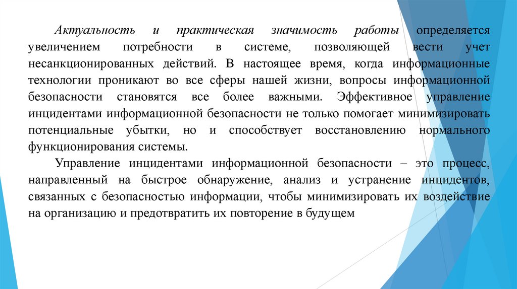 необходимость разработки системы управления инцидентами информационной безопасности;