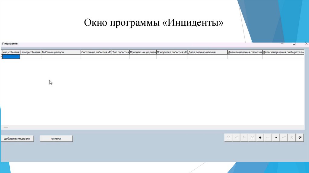 Окно программы «Инциденты»7.