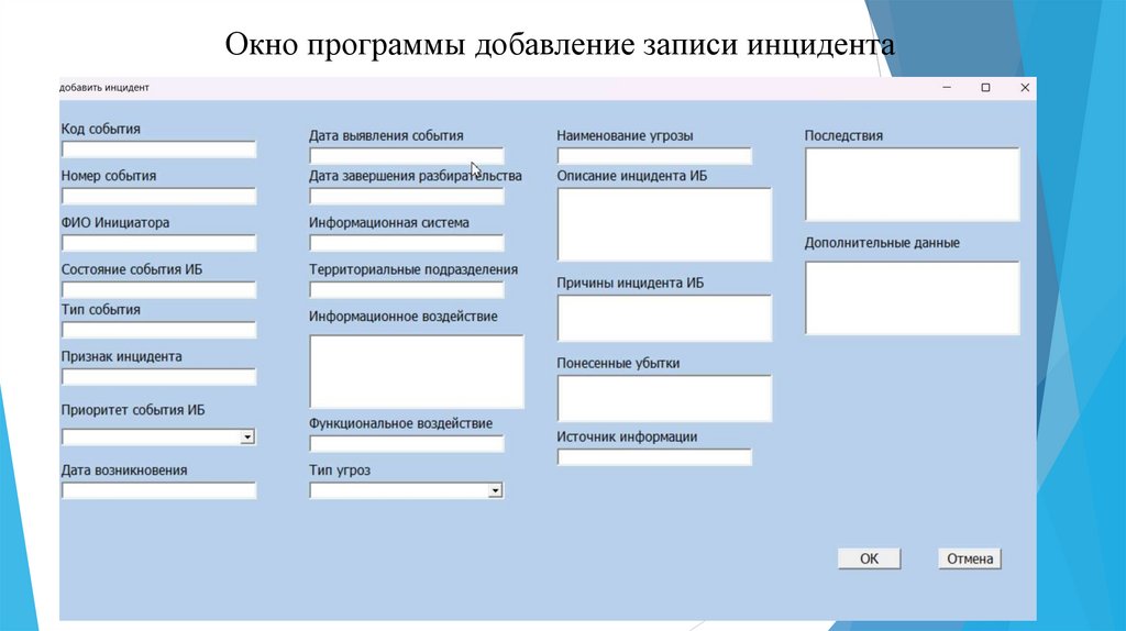 Окно программы добавление записи инцидента8.