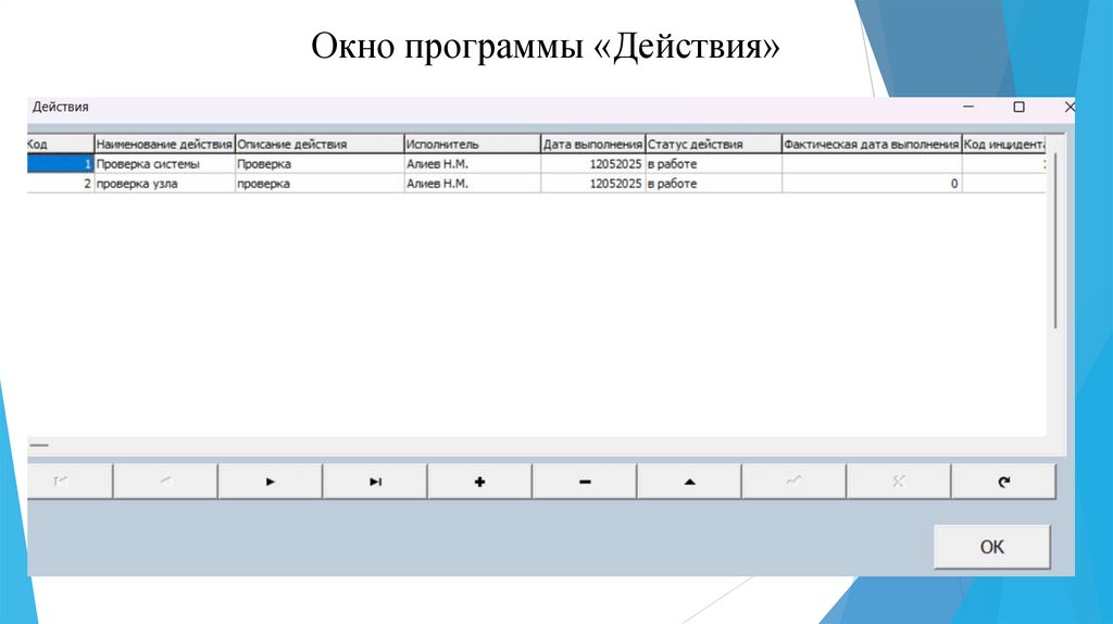 Окно программы «Действия»10.