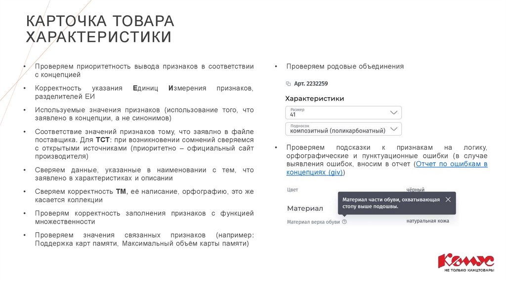 соответствие товару и его признакам