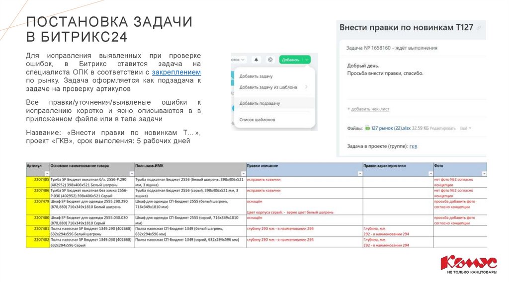 ошибки - задача специалисту ОПК в битрикс *
