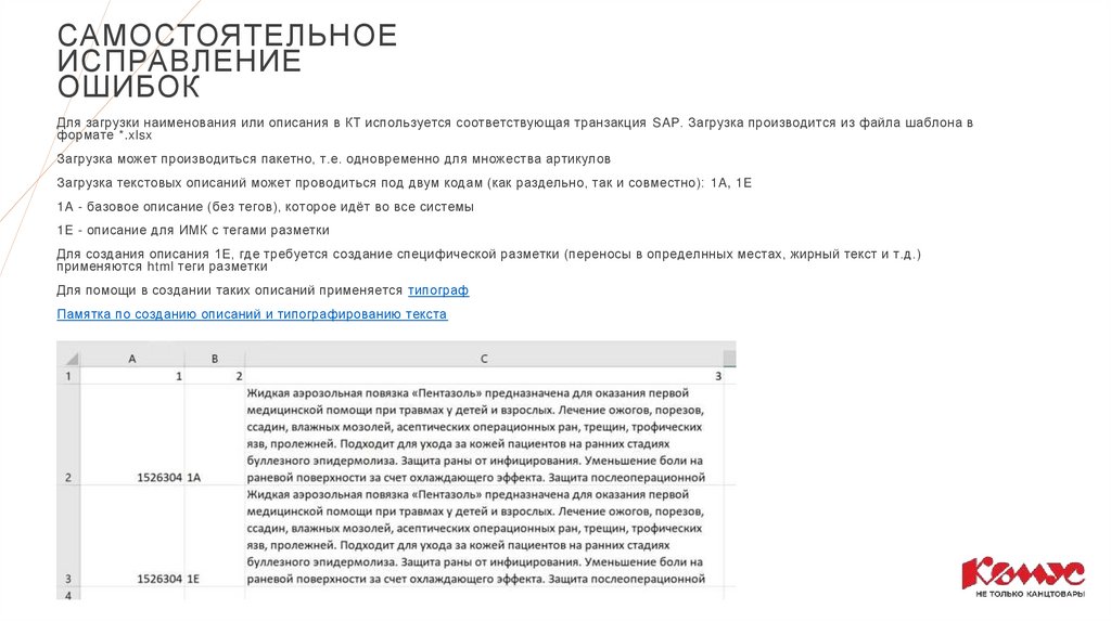 Для загрузки наименования или описания в КТ используется соответствующая транзакция SAP. Загрузка производится из файла шаблона в