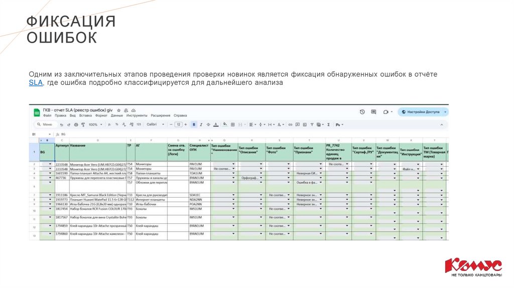 Одним из заключительных этапов проведения проверки новинок является фиксация обнаруженных ошибок в отчёте