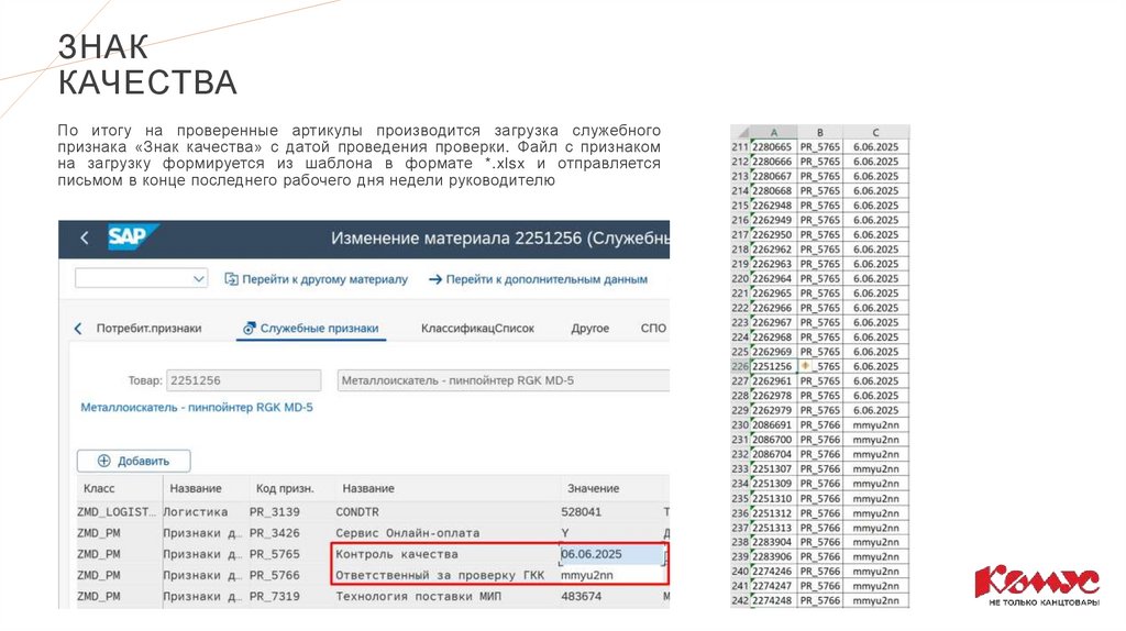 признака «Знак качества» с датой проведения проверки. Файл с признаком