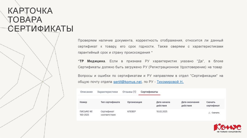 Если в концепции обозначено размещение инструкции к товару, следует проверить её на соответствие артикулу и его характеристикам