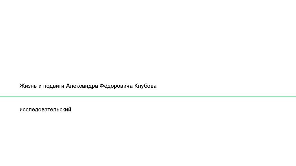 Жизнь и подвиги Александра Фёдоровича Клубоваисследовательский