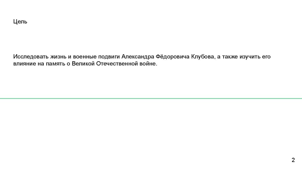 ЦельИсследовать жизнь и военные подвиги Александра Фёдоровича Клубова, а также изучить его