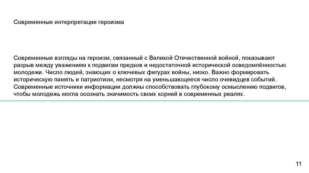 Современные интерпретации героизмаСовременные взгляды на героизм, связанный с Великой Отечественной войной, показывают