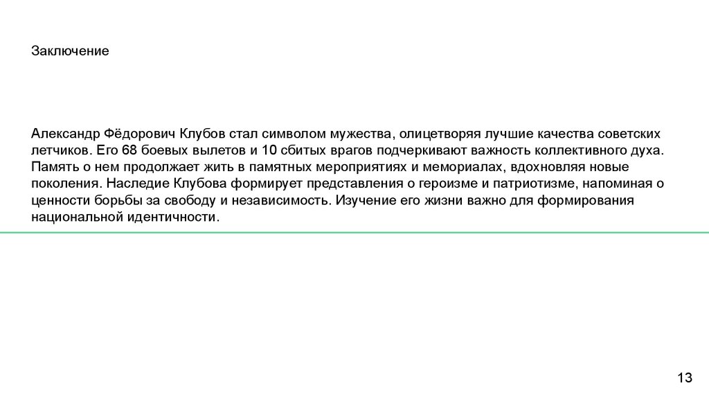 ЗаключениеАлександр Фёдорович Клубов стал символом мужества, олицетворяя лучшие качества советских
