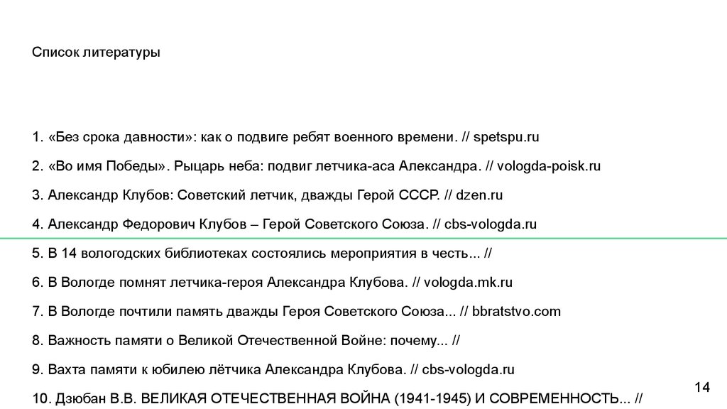 Список литературы1. «Без срока давности»: как о подвиге ребят военного времени. // spetspu.ru