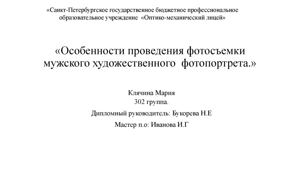 «Санкт-Петербургское государственное бюджетное профессиональноеобразовательное учреждение «Оптико-механический лицей»