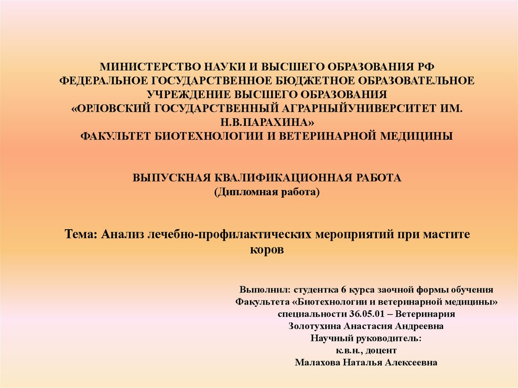 ОБРАЗОВАНИЯ«ОРЛОВСКИЙ ГОСУДАРСТВЕННЫЙ АГРАРНЫЙУНИВЕРСИТЕТ ИМ.