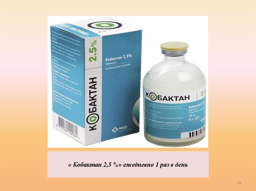 « Кобактан 2,5 %» ежедневно 1 раз в день19