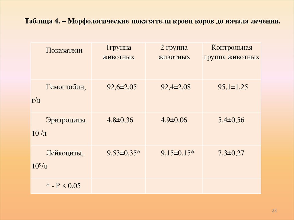 Таблица 4. – Морфологические пока за те ли крови коров до начала лечения.Показатели