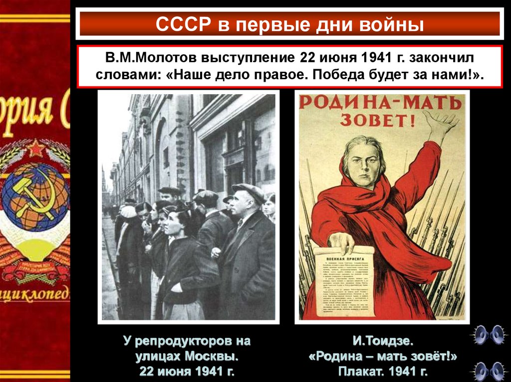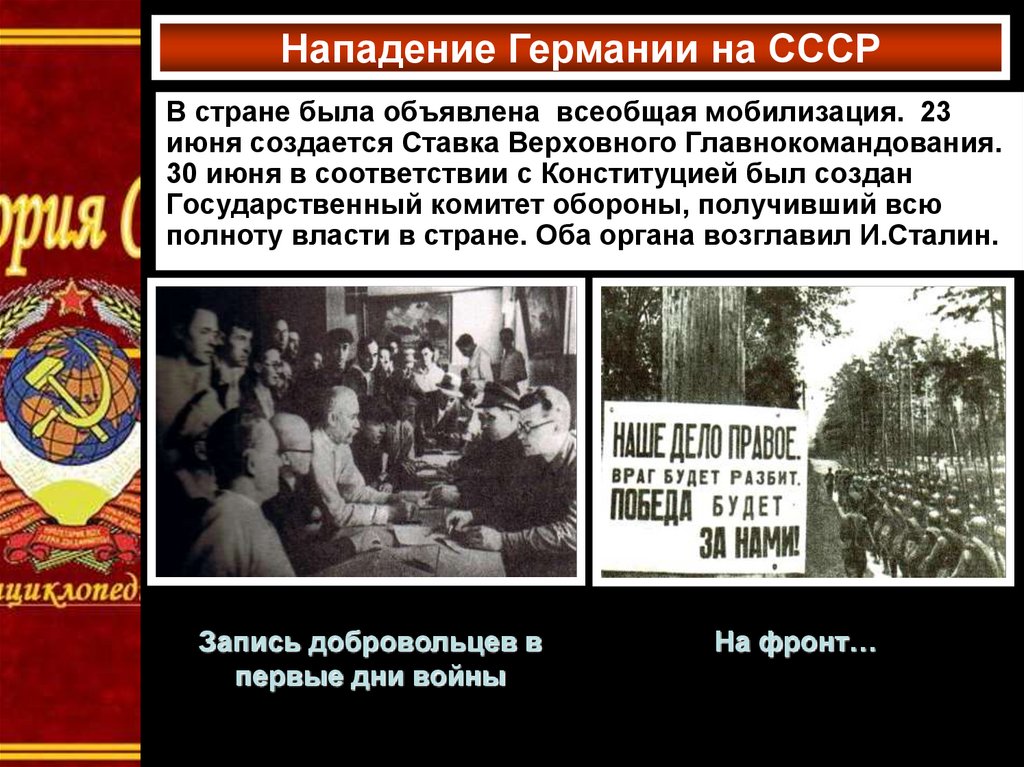 Нападение Германии на СССРВ стране была объявлена всеобщая мобилизация. 23